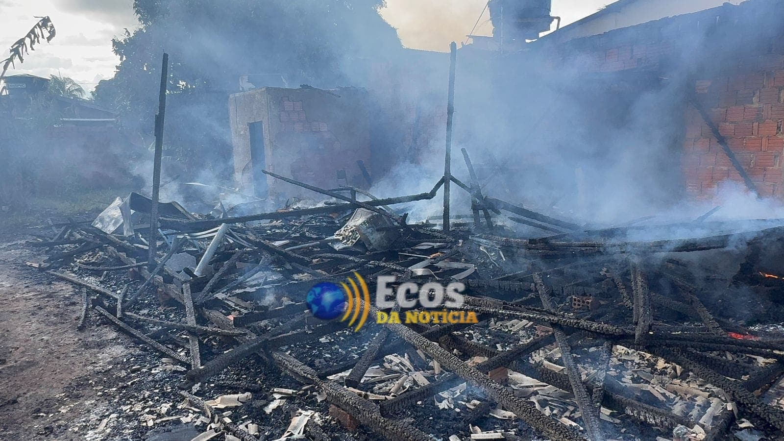 Um incêndio destruiu por completo uma casa de madeira na Rua Montevidéu, no Bairro João Eduardo I, região da Baixada da Sobral, em Rio Branco, na tarde desta quinta-feira (27). O morador conhecido como Litinho sofreu queimaduras ao tentar deixar o imóvel.