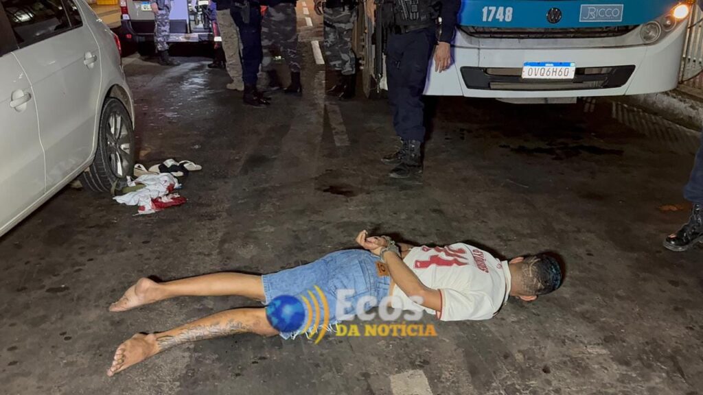 No Terminal, com reforço de equipes do 1º Batalhão, os policiais realizaram a parada forçada do veículo. Foram efetuados três disparos: dois atingiram o capô e um perfurou o para-brisa.