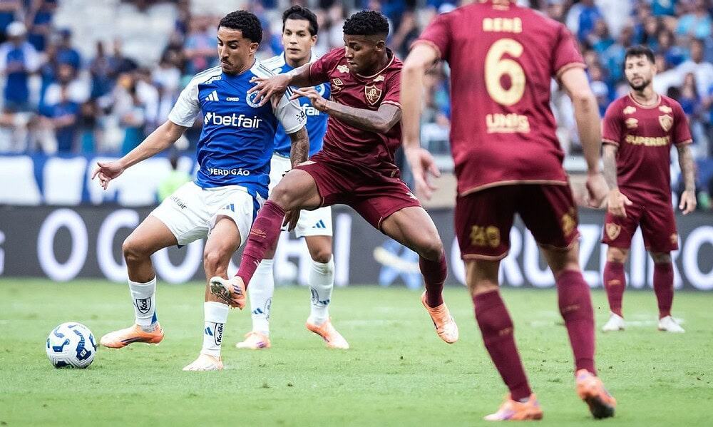 De forma surpreendente, o Fluminense começou em cima do Cruzeiro e fez Cássio trabalhar duas vezes antes dos cinco minutos. Depois dos sustos, a Raposa equilibrou as ações e desperdiçou uma grande oportunidade com Arroyo. No susto, o atacante desviou chute cruzado de Kaio Jorge e a bola saiu por cima.