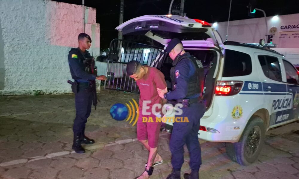 O detento monitorado por tornozeleira eletrônica Gustavo Menezes dos Santos, 25 anos, foi preso por policiais do Tático do 2º Batalhão da Polícia Militar após ser flagrado com uma escopeta calibre 20, na noite desta terça-feira, 4, no conjunto habitacional Cidade do Povo, em Rio Branco.