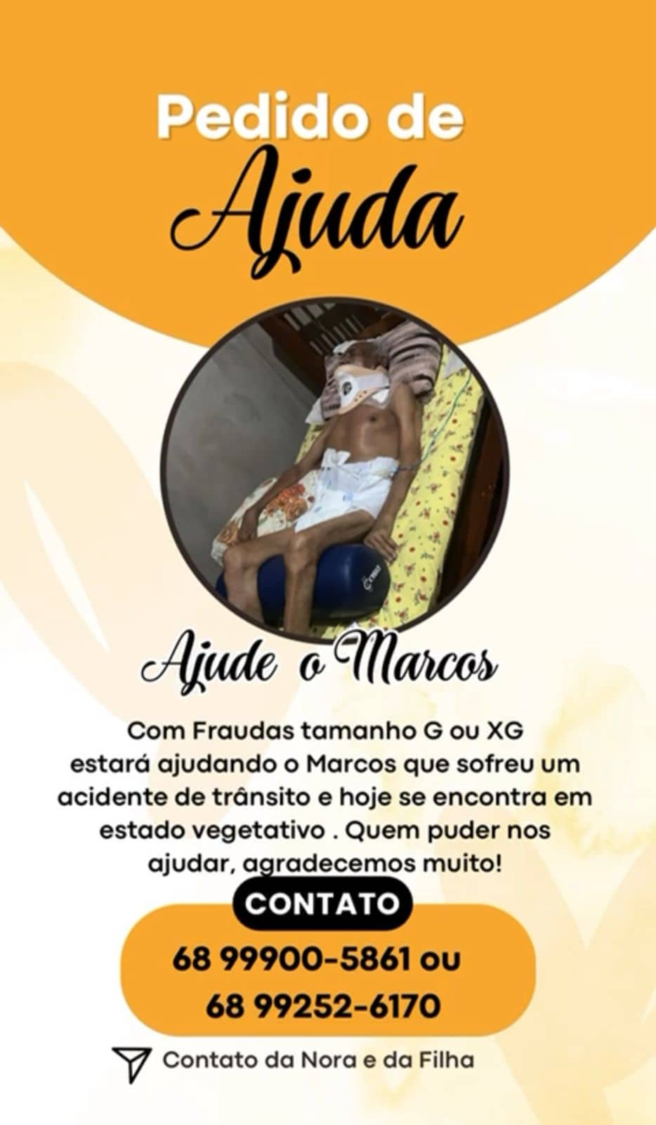 Na data, Seu Marcos atravessava a rua quando foi atropelado por uma motocicleta. Desde então, seu estado de saúde se agravou, e ele permanece em condição praticamente vegetativa, totalmente dependente de cuidados constantes.