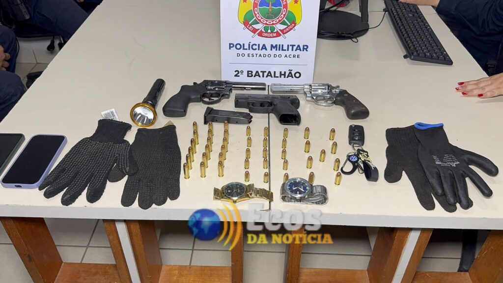Uma ação rápida da Força Tática do 2º Batalhão da Polícia Militar do Acre (PMAC) resultou na prisão de seis suspeitos e na apreensão de três armas de fogo na noite desta sexta-feira (7), no bairro Canaã, em Rio Branco. O grupo, que havia rendido um motorista de aplicativo, pretendia usar o veículo para realizar ataques contra membros de facções rivais.