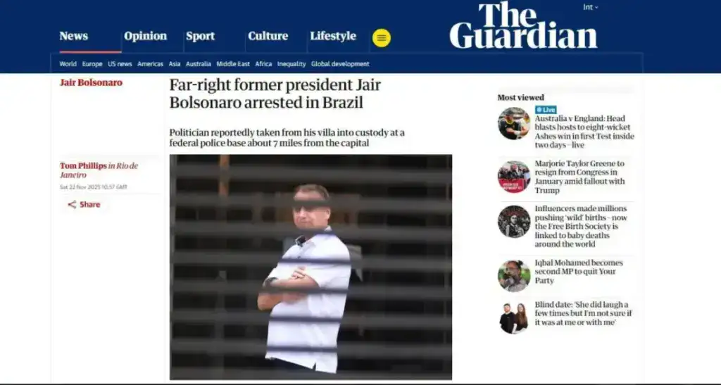O jornal espanhol “El pais” apontou que “o ex-presidente de extrema-direita estava em prisão domiciliar há vários meses, após ter sido condenado em setembro pelo STF por liderar uma tentativa fracassada de golpe de Estado em 2022, depois de perder a eleição presidencial para o atual presidente Luiz Inácio Lula da Silva”.