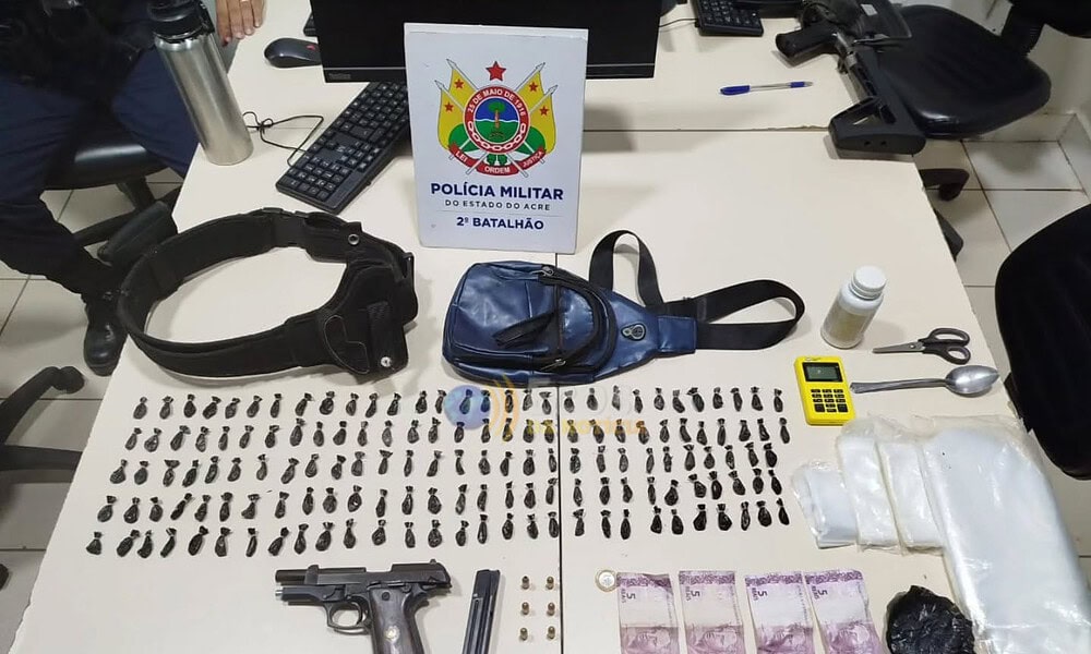 Uma ação do 2º Batalhão da Polícia Militar do Acre (PMAC) resultou na prisão de um homem por tráfico de drogas e porte ilegal de arma de fogo na noite deste sábado (22), no bairro Santa Helena, em Rio Branco. A ocorrência aconteceu por volta das 20h30, após diversas denúncias anônimas sobre o funcionamento de uma boca de fumo na região.