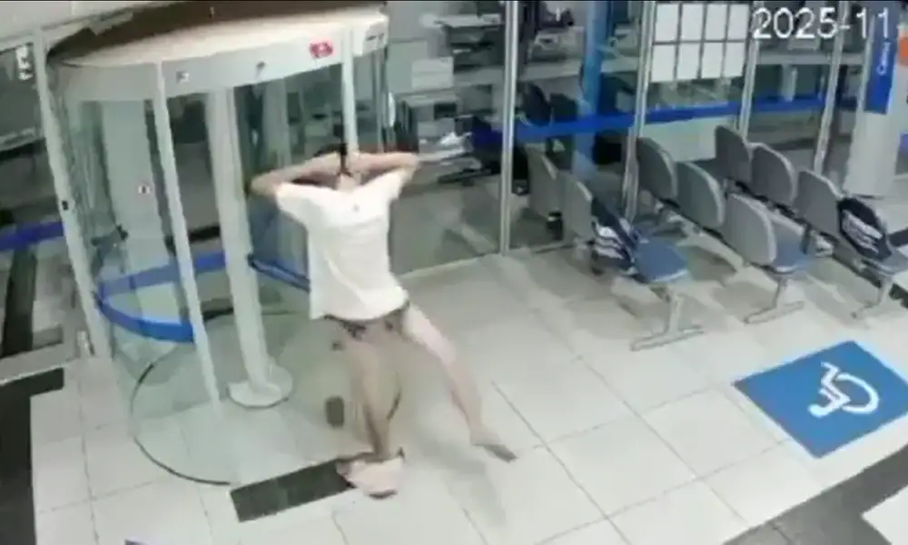Um homem de 20 anos ficou preso em uma porta giratória e acabou só de cueca ao invadir e tentar furtar um banco em Carangola, no interior de Minas Gerais, na madrugada da última sexta-feira (21).