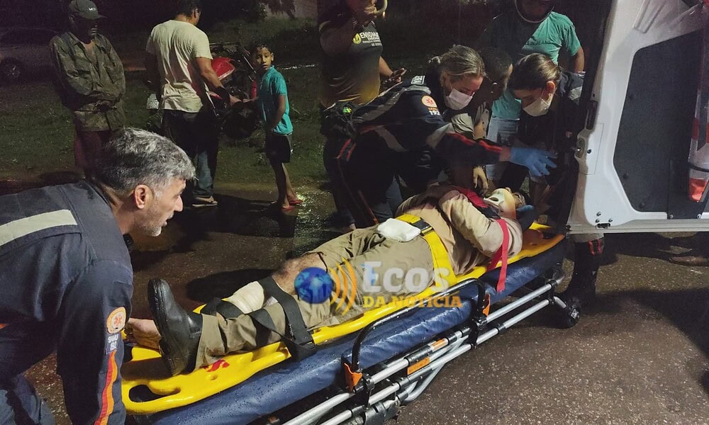 Com o impacto, o motociclista foi arremessado e sofreu fratura exposta na perna direita, além de cortes na testa e no pé direito. O motorista permaneceu no local e prestou assistência.