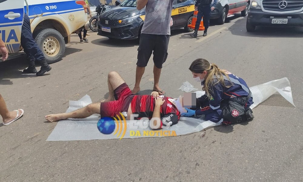 Um adolescente de 16 anos ficou ferido após ser atropelado por uma motocicleta na Via Chico Mendes, no bairro Comara, em frente a URAP Cláudia Vitorino no Segundo Distrito de Rio Branco.O acidente ocorreu na tarde deste sábado (20) e mobilizou equipes da Polícia Militar e do Serviço de Atendimento Móvel de Urgência (SAMU).