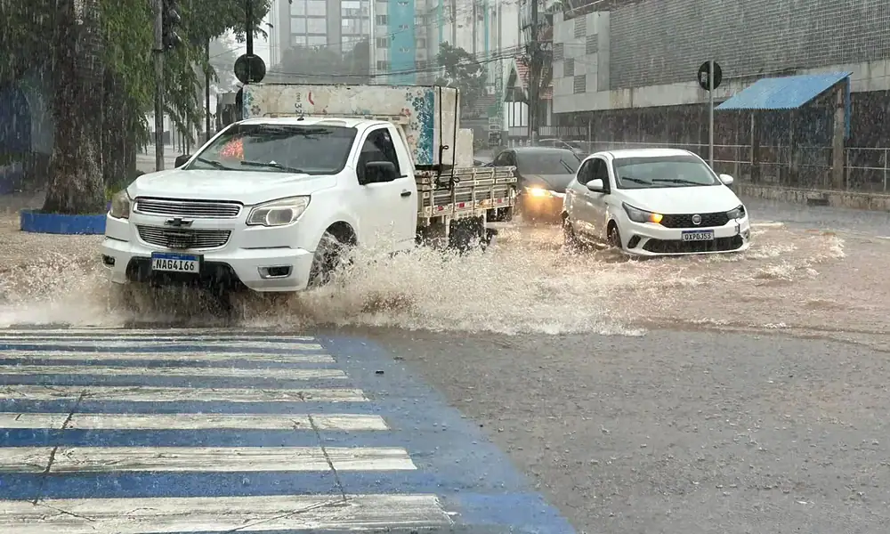 Com a água avançando rapidamente, motoristas reduzem a velocidade e trafegam com cautela. Em alguns trechos, a água já atinge áreas de calçada e pontos de ônibus, evidenciando a rapidez da elevação.