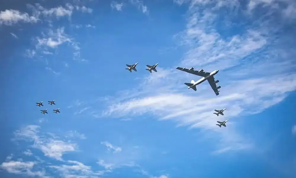 O voo de dois bombardeiros estratégicos B-52 dos EUA com três caças stealth F-35 japoneses e três jatos de superioridade aérea F-15 foi a primeira vez que os EUA afirmaram sua presença militar desde que a China iniciou exercícios militares na região na semana passada.