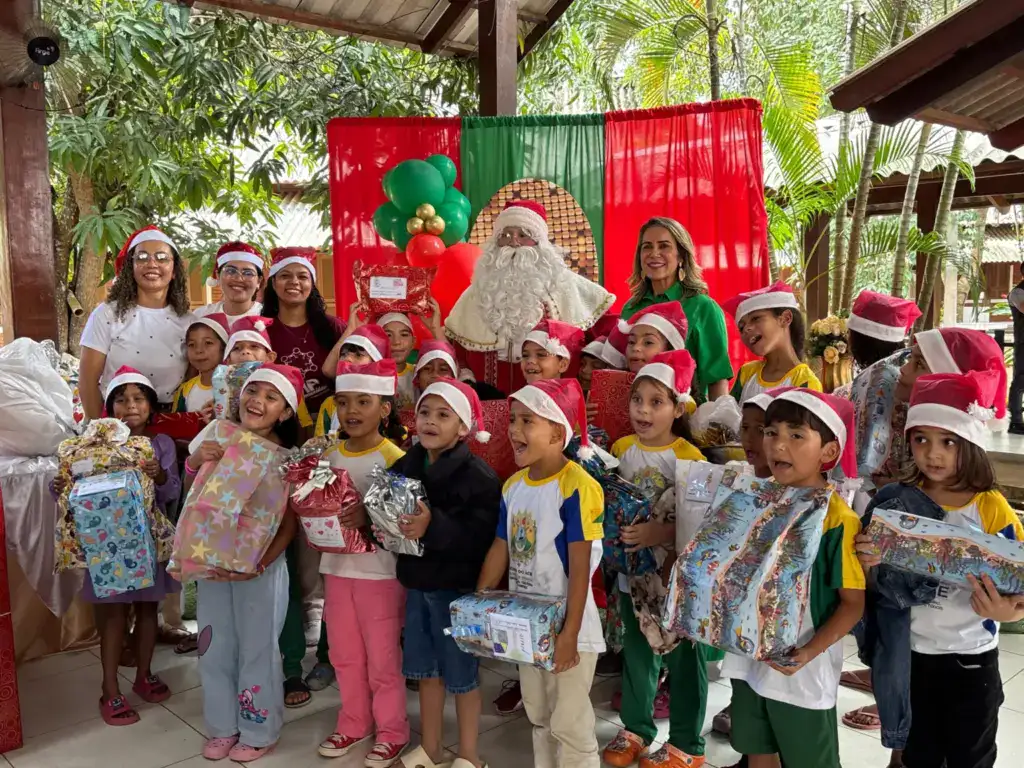 A ação integra a quarta edição da campanha “Adote um Sonho e Faça uma Criança Feliz”, do Ministério Público do Estado do Acre (MPAC), que promoveu um momento de confraternização com a presença do Papai Noel e a participação da comunidade escolar, envolvendo estudantes, equipe pedagógica e familiares.
