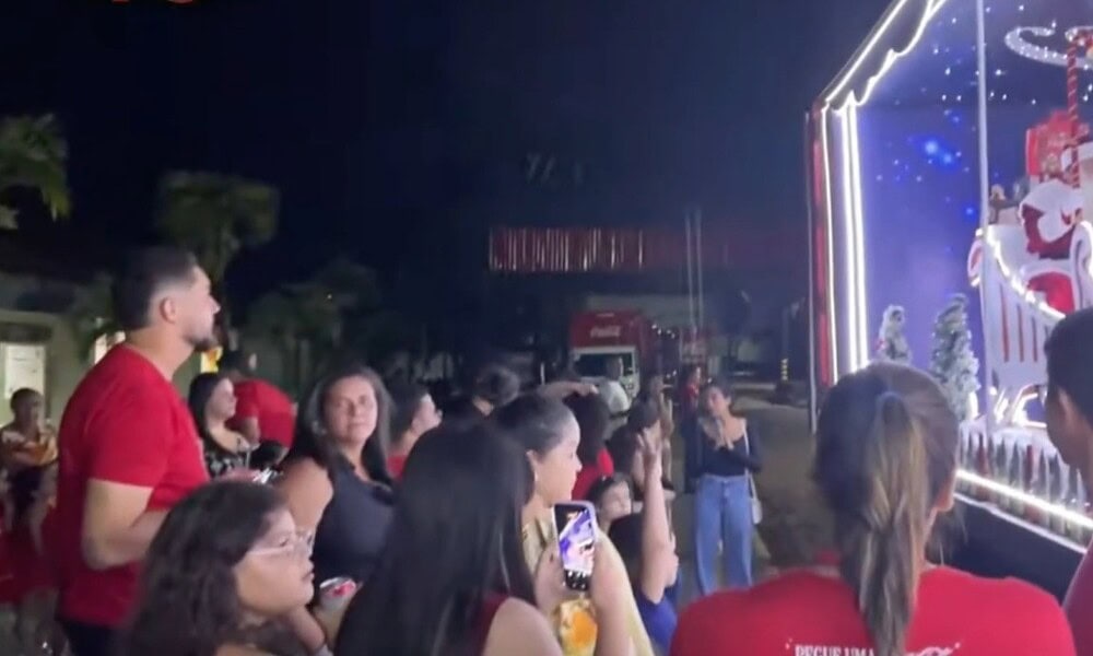 A Caravana de Natal da Coca-Cola, que percorre as ruas de Rio Branco neste sábado (6), atraiu moradores de diferentes regiões da capital para a frente da empresa Solar, ponto de partida do percurso.