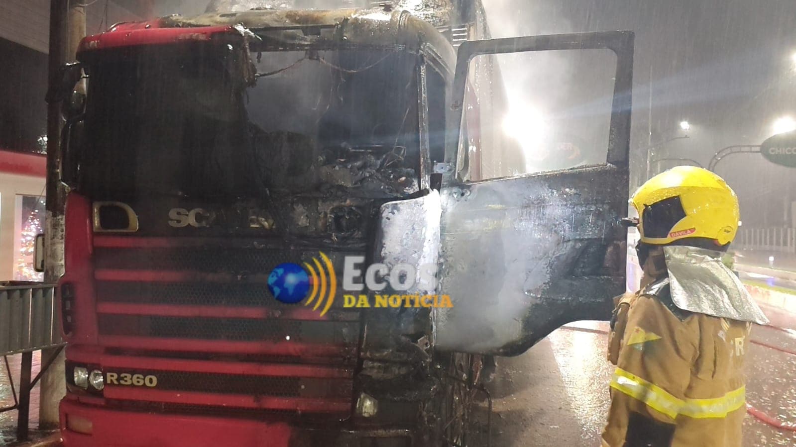 Incêndio destrói cabine de caminhão no Segundo Distrito