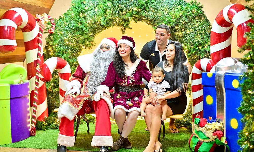 Luand Gadelha trouxe o filho, ainda de colo, para conhecer o Papai e a Mamãe Noel, garantindo à criança boas memórias desde cedo. Para ele, o fim de ano é um momento especial para celebrar a família e refletir sobre as coisas boas da vida ao lado de quem se ama.