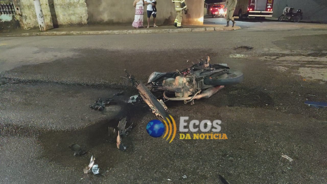 Um acidente envolvendo uma caminhonete e uma motocicleta deixou Shayd Ramon Lima de Souza, de 24 anos, ferido e resultou no incêndio de sua moto na noite deste sábado, 6, na Rua Isaura Parente, no bairro Estação Experimental, em Rio Branco.