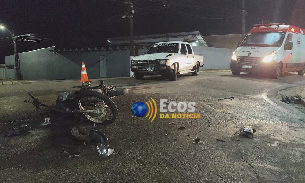 Um acidente envolvendo uma caminhonete e uma motocicleta deixou Shayd Ramon Lima de Souza, de 24 anos, ferido e resultou no incêndio de sua moto na noite deste sábado, 6, na Rua Isaura Parente, no bairro Estação Experimental, em Rio Branco.