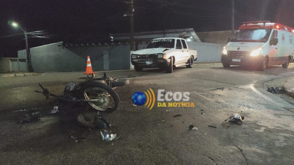 Um acidente envolvendo uma caminhonete e uma motocicleta deixou Shayd Ramon Lima de Souza, de 24 anos, ferido e resultou no incêndio de sua moto na noite deste sábado, 6, na Rua Isaura Parente, no bairro Estação Experimental, em Rio Branco.