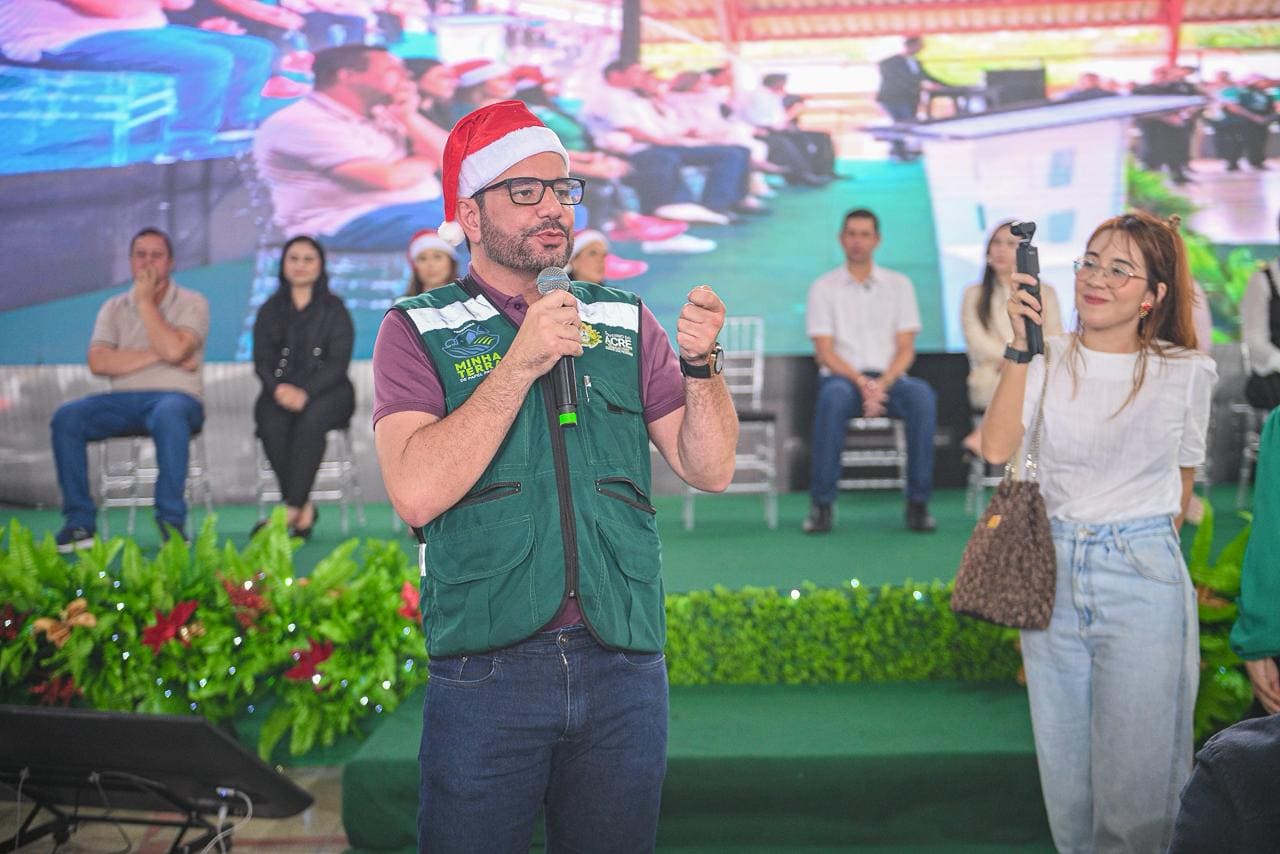 Ele ressaltou que a entrega de títulos definitivos representa cidadania e fortalecimento da economia do Acre. Para ele, a posse legal da terra incentiva os proprietários a investirem em melhorias, o que movimenta o comércio e beneficia toda a cadeia econômica, desde o setor de materiais de construção até a mão de obra.