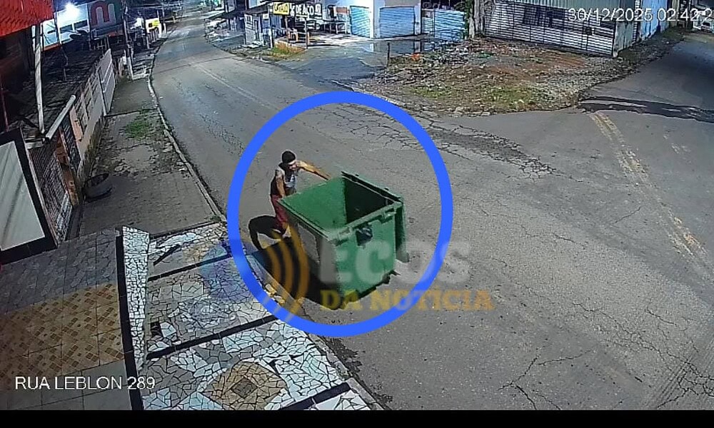 As imagens mostram o momento em que o homem se aproxima da área da praça, observa a movimentação da rua e, em seguida, recolhe a caixa de lixo. Após o furto, ele deixa o local caminhando e segue pela Rua Lebron, desaparecendo do campo de visão das câmeras. A ocorrência aconteceu durante a madrugada, período em que não havia circulação de moradores.
