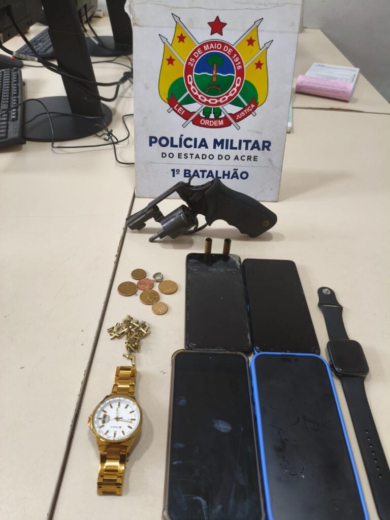 No interior do carro, os policiais localizaram um revólver Taurus calibre .38, com dois estojos de munição deflagrados, escondido sob o banco do carona. Nenhum dos suspeitos assumiu a posse da arma. Durante a abordagem, um dos detidos alegou ser motorista de aplicativo e que havia sido chamado pelos outros dois homens.