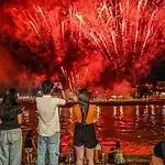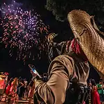 Antes da queima de fogos, o público assistiu ao show de drones, que teve início por volta das 20h30 e durou pouco mais de 12 minutos. Cerca de 600 drones formaram imagens no céu, em uma apresentação sincronizada que chamou a atenção de quem estava no local.