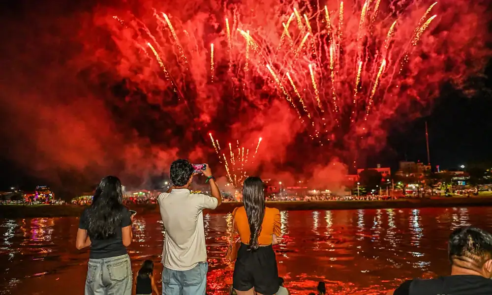 Um show pirotécnico marcou o encerramento da programação do show de drones realizado neste sábado, 20, na Gameleira, em Rio Branco. A apresentação atraiu o público que acompanhava o espetáculo aéreo e marcou o encerramento do espetáculo.