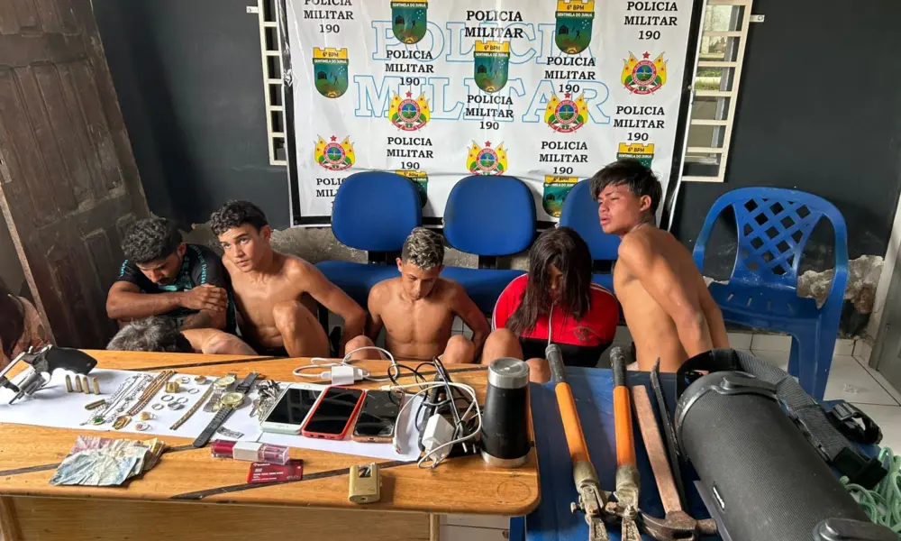 Sete pessoas, incluindo duas mulheres, foram presas no sábado, 13, em Marechal Thaumaturgo, pela Polícia Militar, por furto qualificado, associação criminosa, posse irregular de arma de fogo, corrupção de menores e receptação.