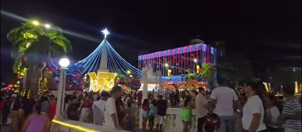 O videomaker Kenedy Santos registrou, neste sábado (20), a intensa movimentação de famílias e visitantes na ornamentação natalina promovida pelo governo do Acre, no centro de Rio Branco.