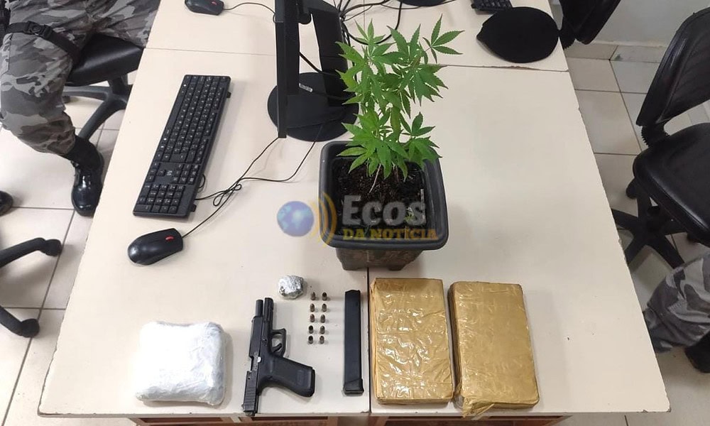 Com a autorização para ingresso na residência, a guarnição realizou buscas no local, onde encontrou uma grande quantidade de drogas, além de uma arma de fogo.