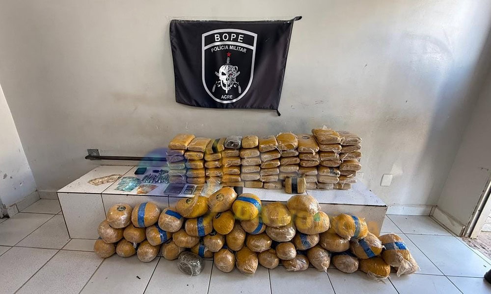 Uma operação do Batalhão de Operações Especiais (BOPE), por meio da Companhia CHOQUE, resultou na apreensão de aproximadamente 106 quilos de entorpecentes análogos à skank, além da prisão de três pessoas suspeitas de tráfico de drogas, na tarde desta segunda-feira (19), em Rio Branco. A ação também culminou na apreensão de R$ 1.850 em dinheiro e de um veículo utilizado no transporte do material ilícito.