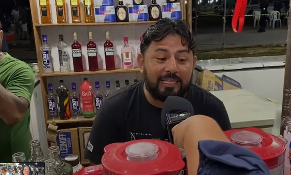 Questionado sobre a composição da bebida, o empreendedor detalhou os ingredientes utilizados. “Geralmente é o leite condensado, o açúcar, o sabor, a vodka e o gelo”, ressaltou.