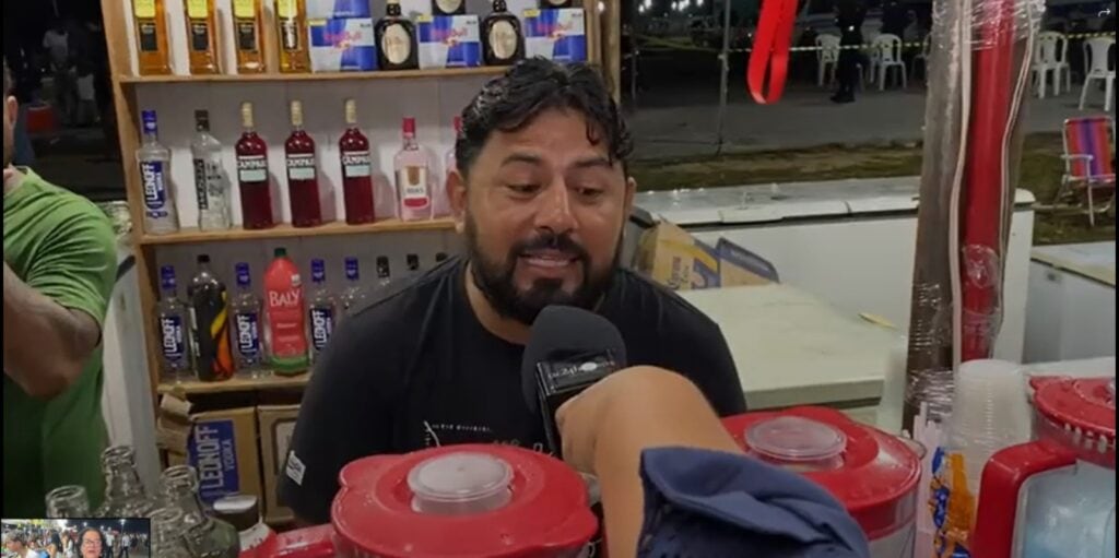 Questionado sobre a composição da bebida, o empreendedor detalhou os ingredientes utilizados. “Geralmente é o leite condensado, o açúcar, o sabor, a vodka e o gelo”, ressaltou.