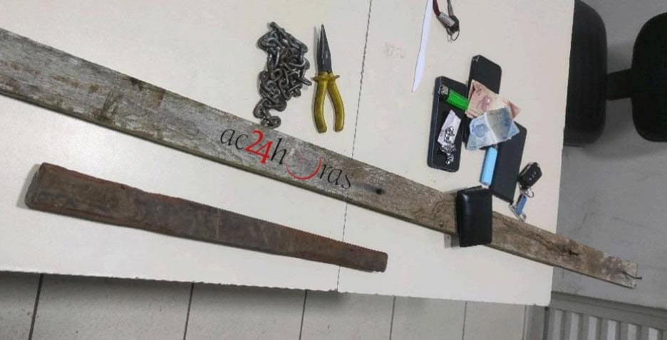 No interior da casa, os policiais apreenderam uma ripa de aproximadamente dois metros, um porrete, um alicate e uma corrente metálica. Segundo a corporação, o uso de algemas foi necessário em razão da resistência e para garantir a segurança das equipes, conforme a Súmula Vinculante nº 11 do Supremo Tribunal Federal.