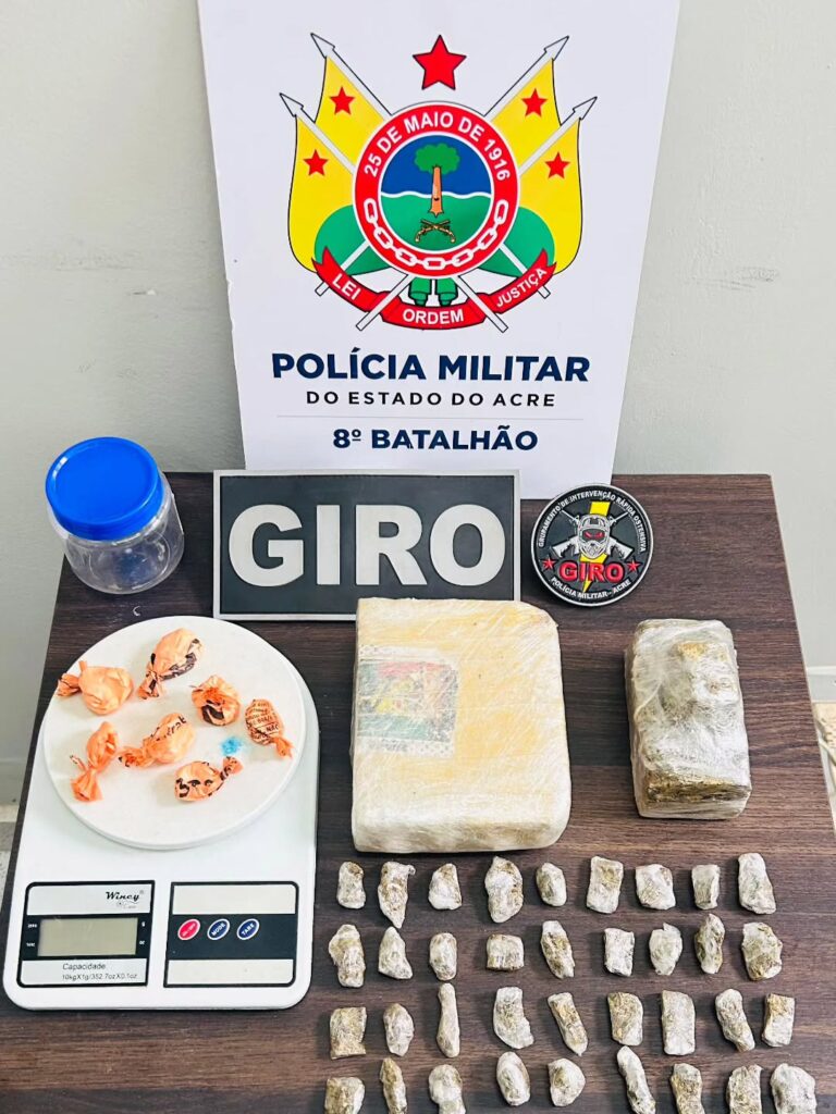 Na tarde desta sexta-feira (9), a Polícia Militar realizou a apreensão de entorpecentes no bairro Cristo Libertador, em Sena Madureira, durante uma ação do Grupamento de Intervenção Rápido Ostensivo (GIRO), pertencente ao 8º Batalhão.