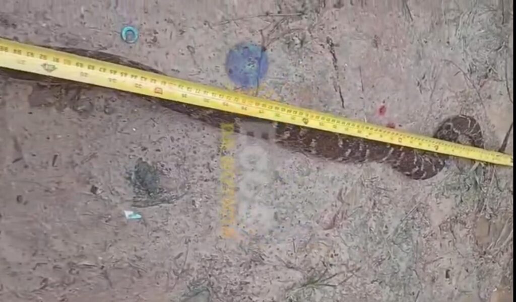 Segundo informações apuradas, o homem fazia a capina do terreno quando percebeu a presença da serpente, identificada como uma jararacuçu, espécie conhecida pelo alto grau de periculosidade. Diante do risco, o animal foi abatido. Após a ação, a cobra foi medida e ultrapassava um metro de comprimento, o que evidencia o potencial perigo enfrentado.