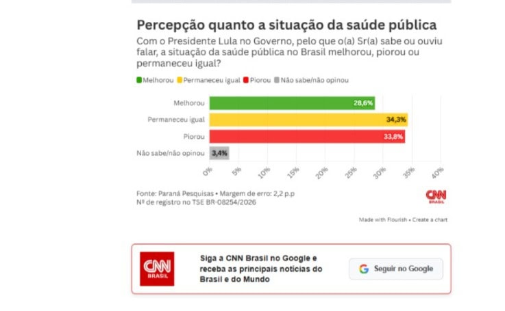 O levantamento também mapeou a percepção da sociedade com relação à situação da saúde pública do país.