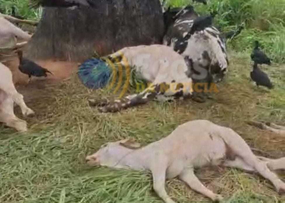 Um raio atingiu uma árvore e provocou a morte de vários bovinos em uma propriedade rural localizada no km 25 da BR-364, no trecho entre os municípios de Sena Madureira e Rio Branco. O incidente ocorreu na tarde desta sexta-feira (09) e foi registrado em vídeo, que mostra diversos animais já sem vida espalhados pelo pasto.