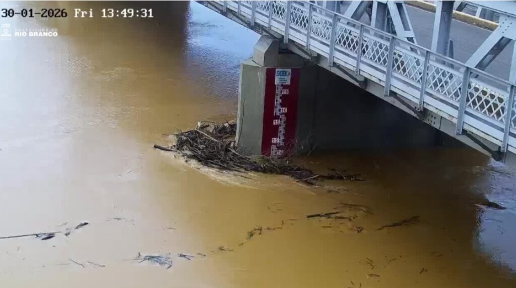 Nas últimas 24 horas, foi registrado 1,0 milímetro de chuva, volume considerado baixo, mas que, somado ao acúmulo hídrico na bacia do Rio Acre, contribui para a manutenção do nível elevado.