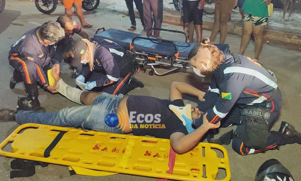 Um acidente de trânsito envolvendo uma motocicleta e um carro deixou Kevin Pontes da Costa, de 20 anos, ferido na noite desta quarta-feira (11), na Avenida Sobral, no bairro Glória, região da Baixada da Sobral, em Rio Branco.
