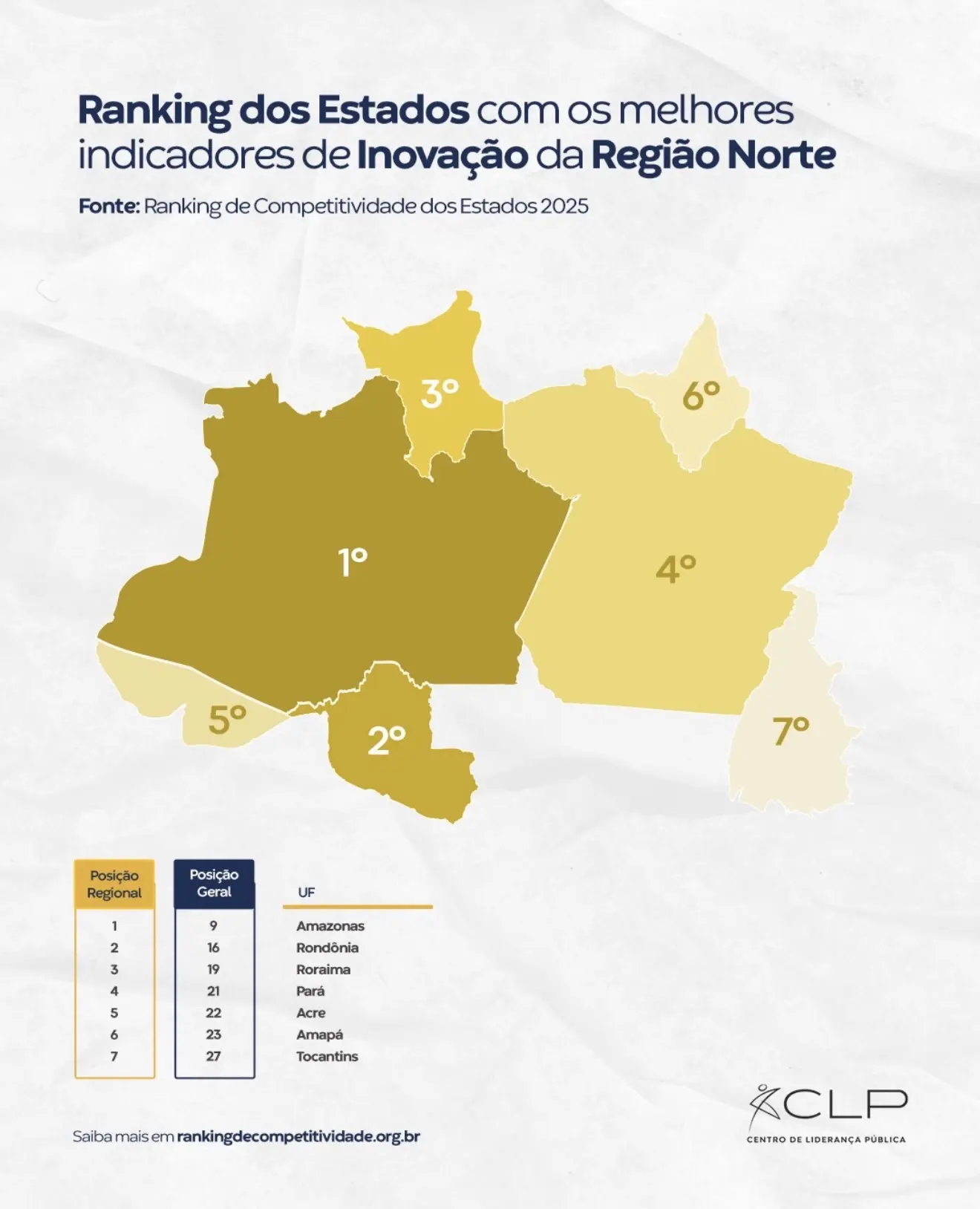 O Acre ocupa a 5ª posição entre os estados da Região Norte no pilar de Inovação do Ranking de Competitividade dos Estados 2025, ficando à frente do Amapá e do Tocantins. Os dados fazem parte do recorte regional do estudo, que avalia a capacidade dos estados em impulsionar novas técnicas, métodos e tecnologias como estratégia para ampliar a produtividade e gerar desenvolvimento econômico sustentável.