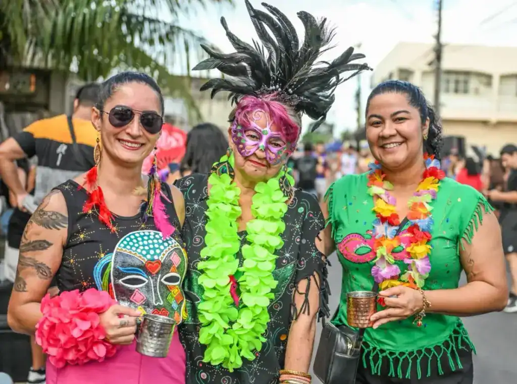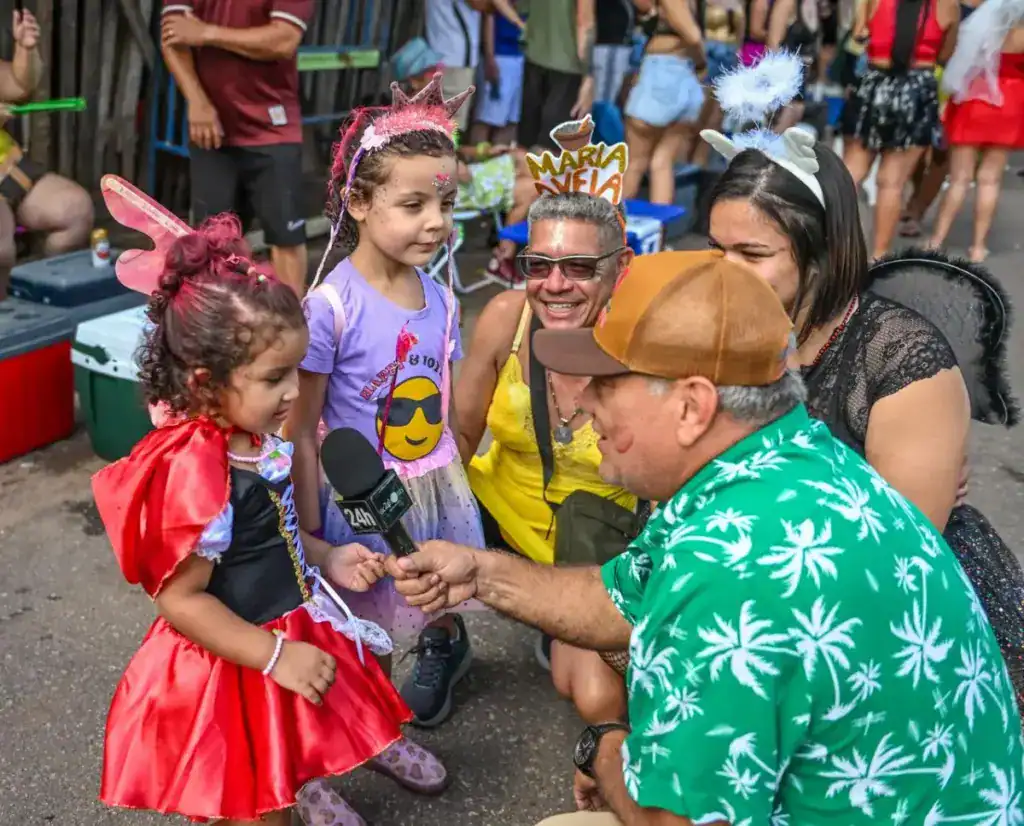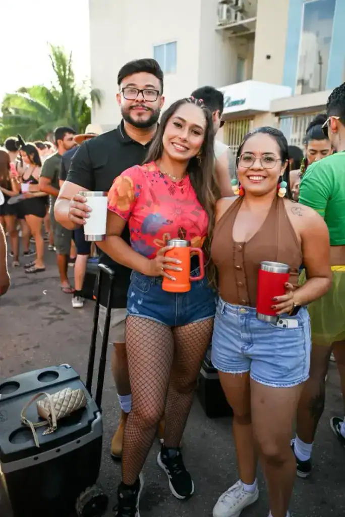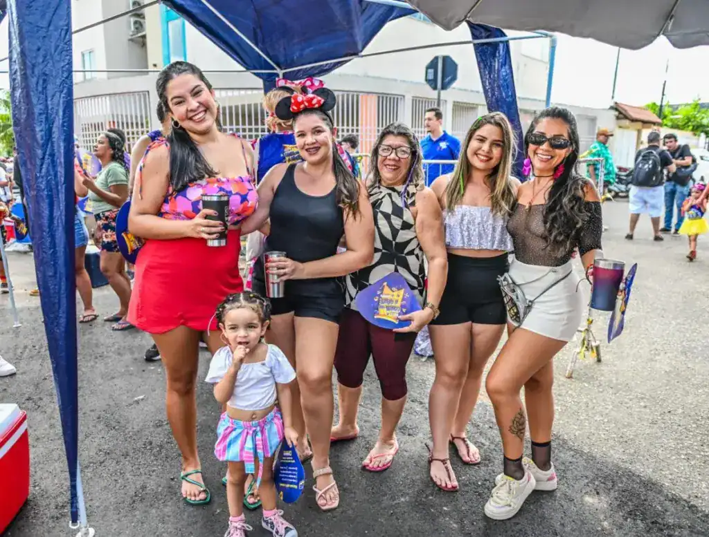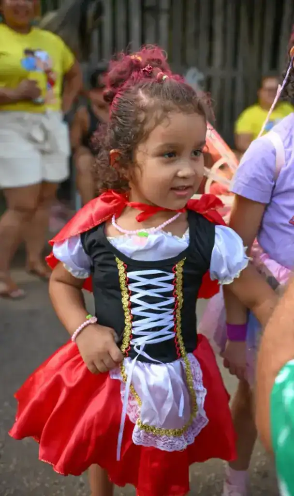 A presença de famílias também chamou atenção. As crianças Eloísa e Manoela participaram da festa fantasiadas de Chapeuzinho Vermelho e fadinha, reforçando o caráter democrático do bloco, que reúne públicos de todas as idades.