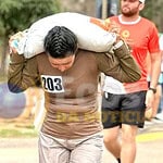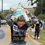 Na segunda etapa, os homens tiveram que carregar um saco de 50 quilos por 400 metros até a entrada do estande de tiros. Para as mulheres, o peso foi de 40 quilos no mesmo trajeto.