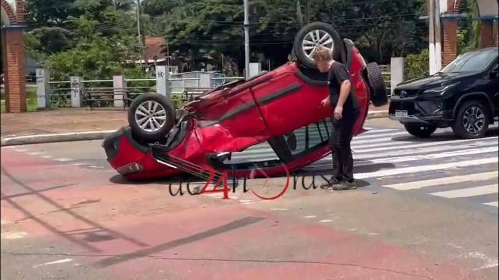 Um acidente de trânsito envolvendo dois veículos deixou Marlize Itani Feitosa, de 55 anos, Luan e Ana Sarah Silva da Costa, de 18 anos, feridos e um carro capotado no início da tarde desta quinta-feira (12), no cruzamento da Avenida Ceará com a Rua Manoel Rodrigues de Souza, no bairro Dom Giocondo, em Rio Branco.