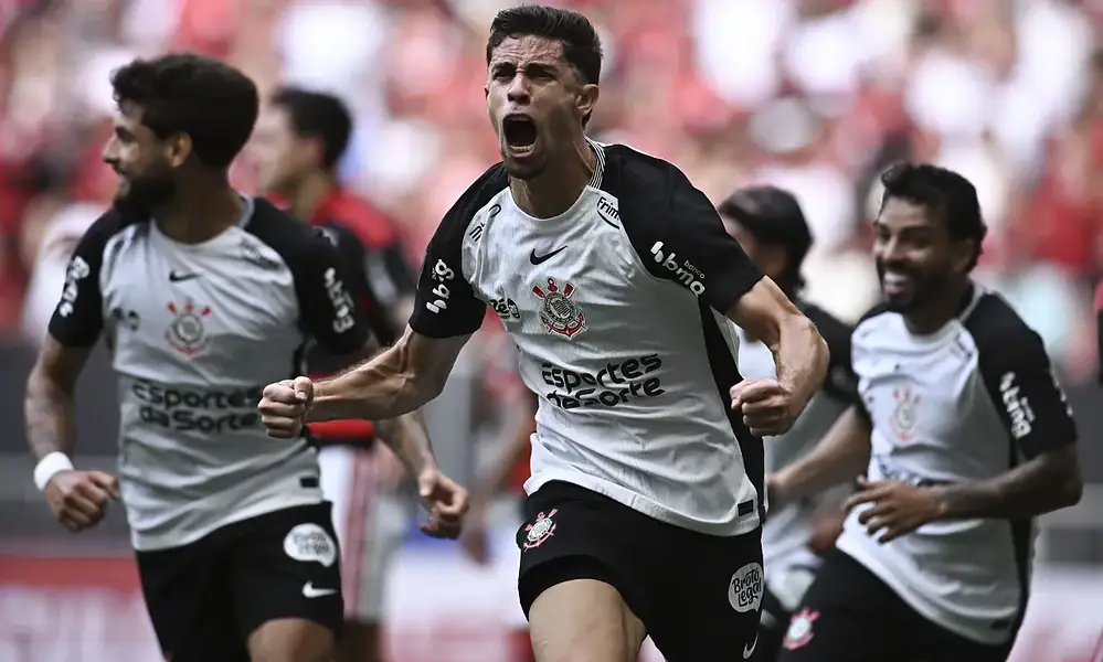 Com um a menos, o Flamengo ainda assustou com uma cabeçada de Pulgar no travessão. Yuri Alberto também acertou a trave na chance mais clara do Corinthians no segundo tempo até o gol nos acréscimos.