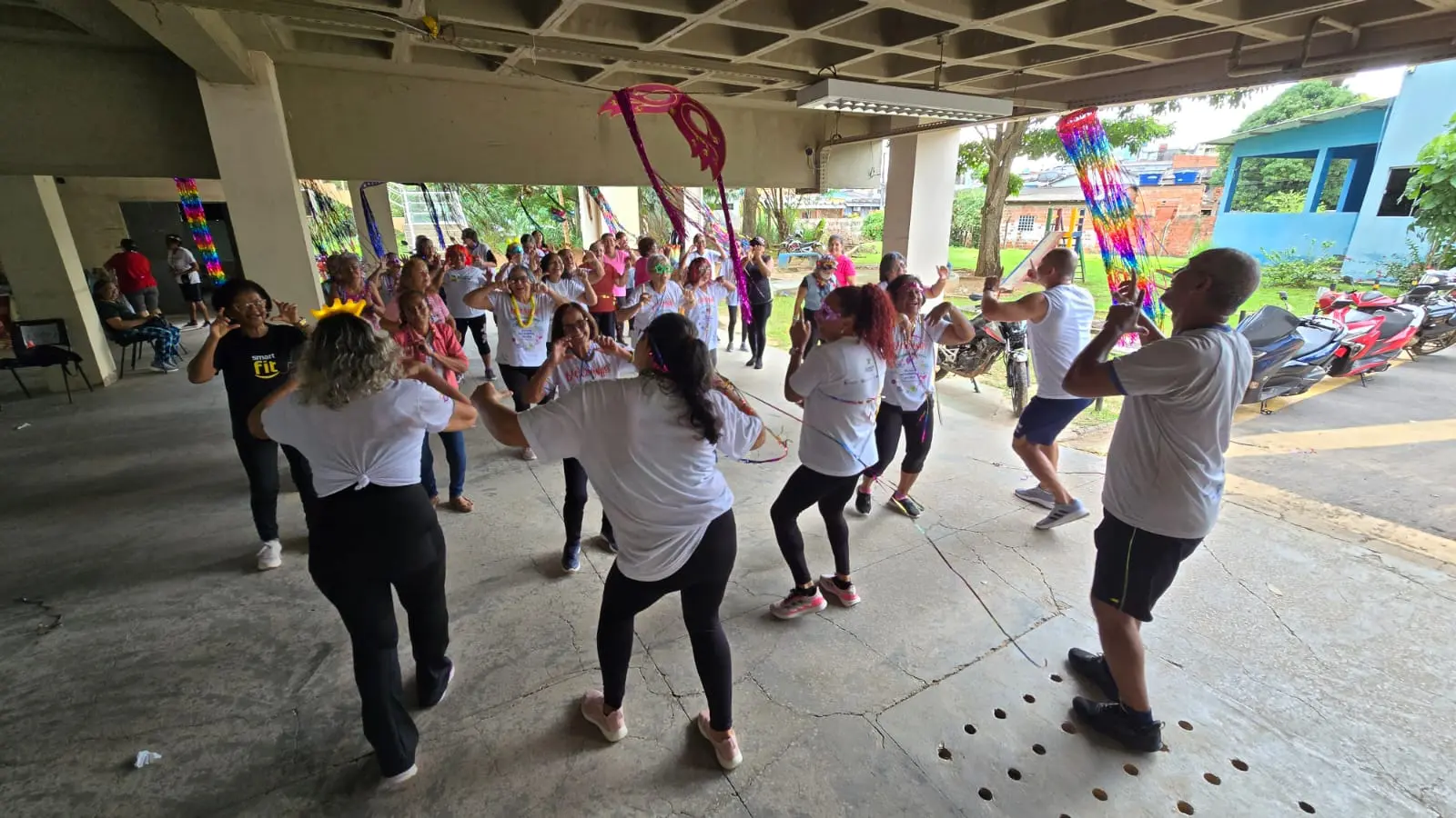 Valdenora Teixeira reforçou os benefícios para a saúde. “A gente necessita de atividade física. A saúde em primeiro lugar. Hoje é o nosso carnaval, bloquinho, com café da manhã compartilhado. É um lugar de lazer. Quando alguém dá uma ideia, seja para o carnaval, para a Semana Santa ou para um passeio, nós estamos dentro.