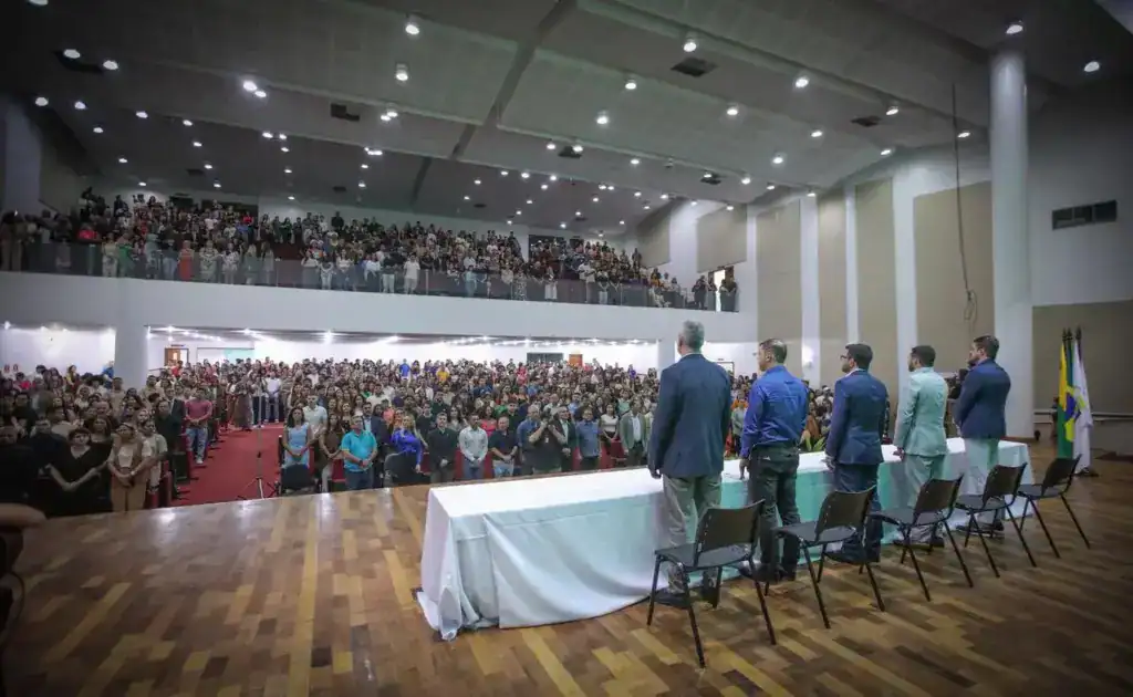 O governo do Acre empossou nesta terça-feira (10) 571 novos servidores efetivos para reforçar a rede estadual de ensino, entre professores e servidores de apoio administrativo. A cerimônia foi realizada no auditório do Teatro da Universidade Federal do Acre (Ufac), em Rio Branco, e ocorreu simultaneamente em todos os municípios do estado, com o objetivo de recompor o quadro efetivo da Educação Básica.