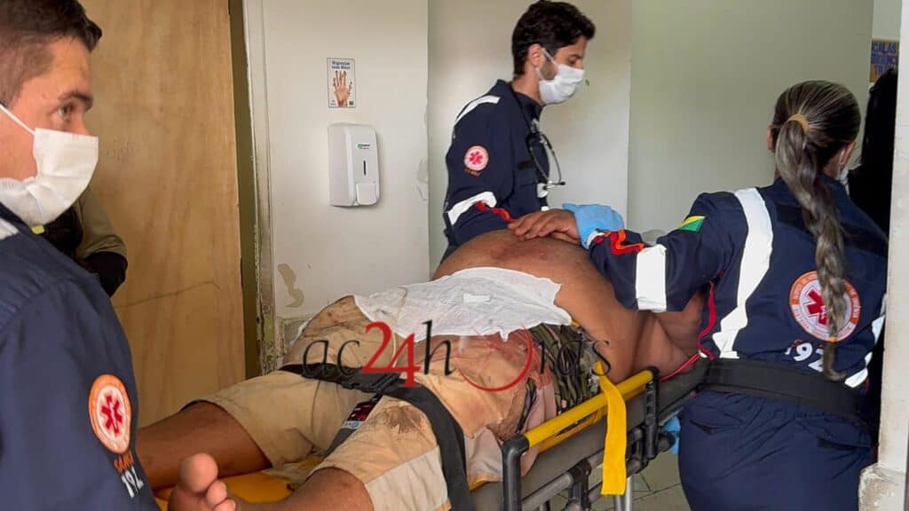 Por conta do rebaixamento do nível de consciência, a vítima precisou receber oxigênio e foi encaminhada ao pronto-socorro de Rio Branco, sendo levada diretamente para a sala de trauma para avaliação médica e possível intervenção cirúrgica.