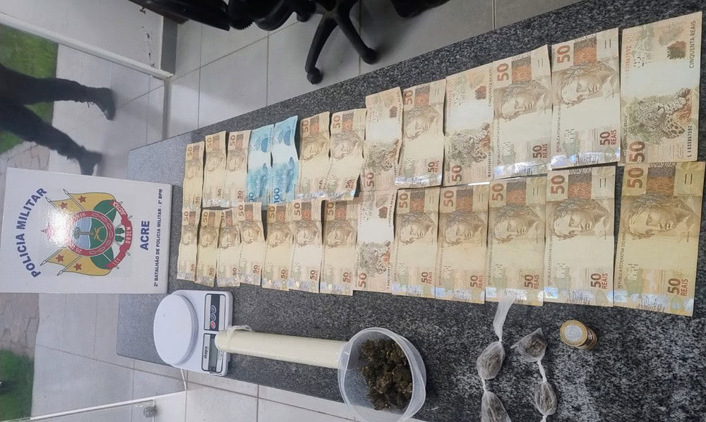 No interior da residência, a polícia apreendeu uma quantidade de drogas já embaladas, além de dinheiro em espécie e uma balança de precisão. Também foram recolhidos insumos destinados ao fracionamento e preparo dos entorpecentes para a venda.