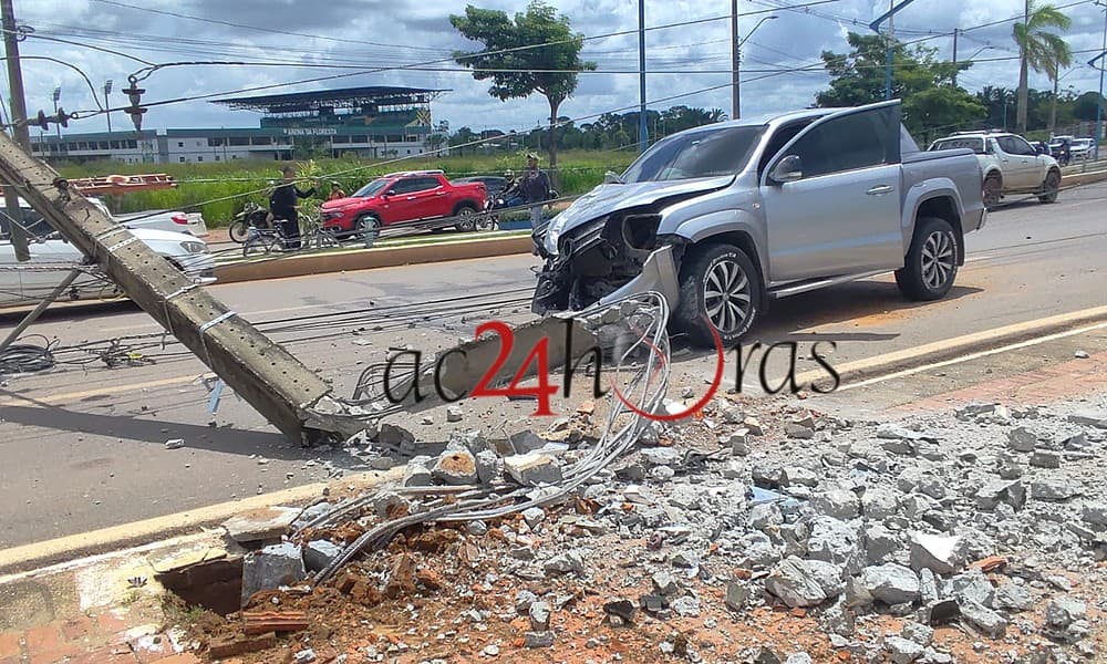 Um acidente de trânsito envolvendo uma caminhonete de uma concessionária e uma motocicleta deixou o mototaxista Ademir da Veiga, de 56 anos, ferido e um poste de energia quebrado na manhã deste sábado (28), na Via Chico Mendes, nas proximidades do Instituto Federal do Acre (IFAC), no Segundo Distrito de Rio Branco.