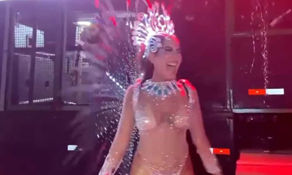 A reportagem também registrou a presença da rainha de bateria, Carol, que destacou o clima de alegria e emoção momentos antes do desfile. “Pode esperar muita alegria, a gente vai jogar todo mundo pra cima e o melhor é mostrar o nosso orgulho de ser acreano”, disse. Ela também revelou que a produção do figurino foi feita por ela mesma e que investiu cerca de R$ 3 mil na fantasia.