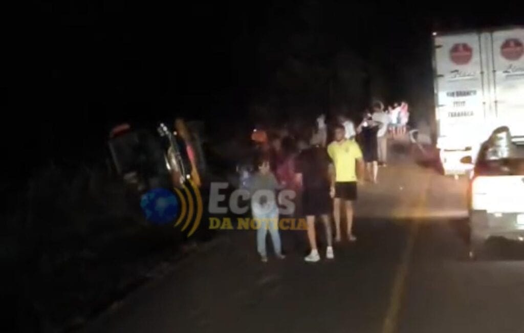 De acordo com as primeiras informações apuradas, o motorista teria perdido o controle da direção, fazendo com que o coletivo saísse da pista antes de tombar às margens da rodovia. O acidente provocou momentos de tensão entre os passageiros que estavam no veículo no momento da ocorrência.